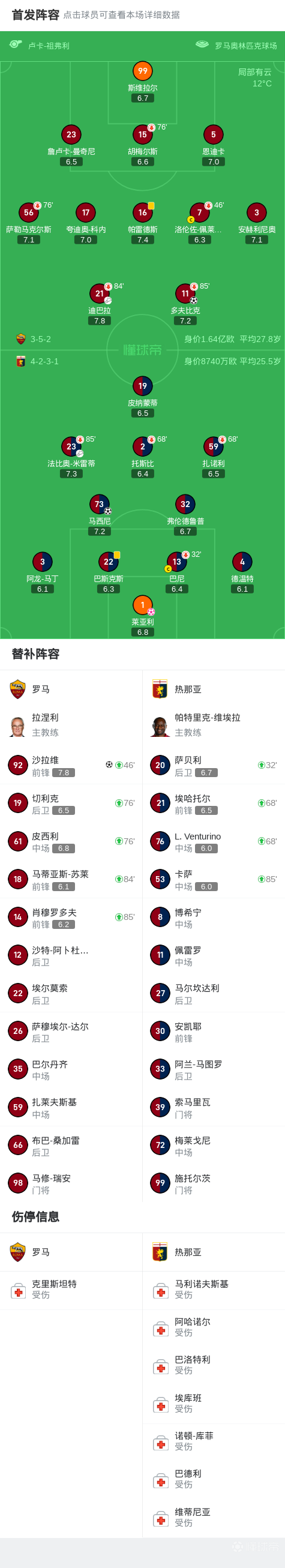 整场比赛,罗马队展现出了出色的团队配合和个人技术实力。球员们在场上奋力拼搏,为观众献上了一场精彩纷呈的比赛。热那亚队也展现出了顽强的斗志和不屈的精神,经过全力拼搏,但最终还是不敌罗马的强势表现。